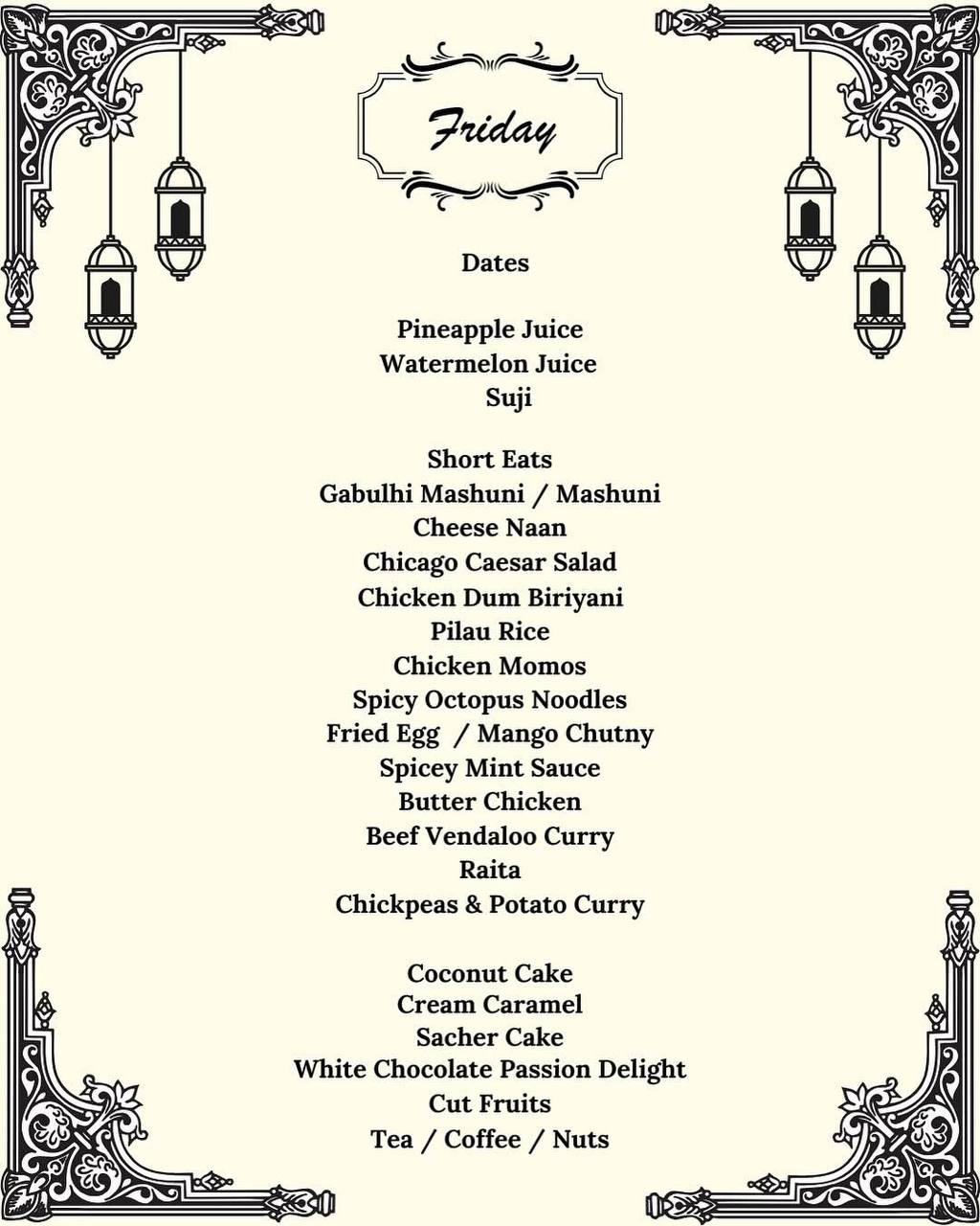 Friday Iftar Menu
