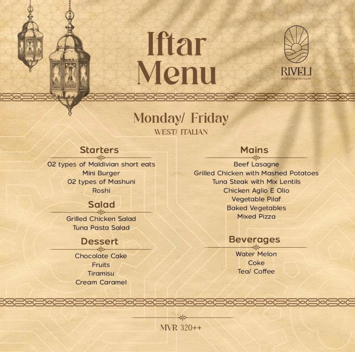 The menu is priced at MVR 320++ (Maldivian Rufiyaa).